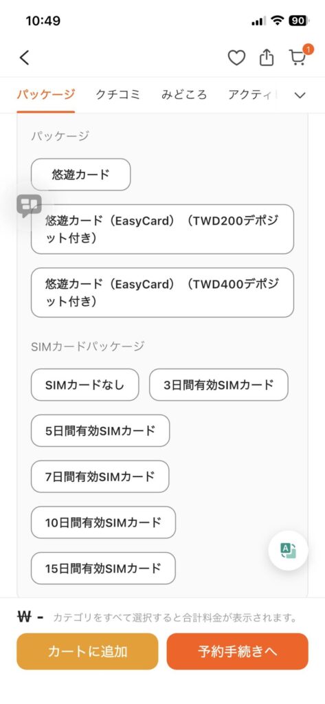 さらに悠遊カードと共にSIMカードを購入できるオプションもあります。