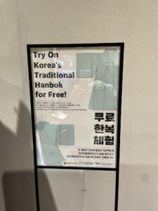 無料でできる文化体験としては、美しい韓服を着ることができます。