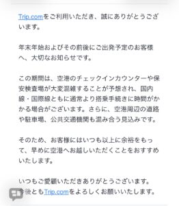 航空券を予約した会社からは出発前にこんなメールが来て3時間前に到着したほうがいいのか、悩みました。
