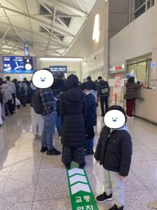 2025年年末、激混みの仁川空港に6歳の子連れで国際線に乗る場合、やはり2時間は余裕を持って到着したほうがいいでしょう。